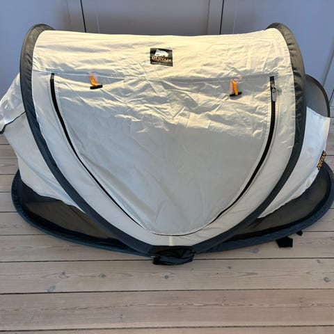 Sengen er lavet i åndbart letvægtsmateriale og kan også bruges udendørs, fx i haven eller på stranden, da den har både myggenet og UV-beskyttelse 50+. Kan også bruges som en hyggelig lille hule til leg og afslapning.