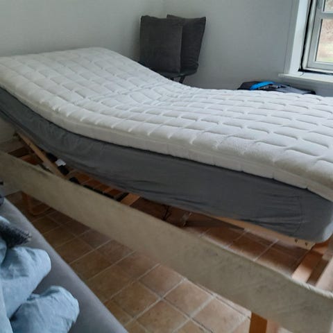 Elevation med to medfølgende OKIN fjernbetjeninger - to enkeltmadrasser med mål 80,5 x 190,5 cm skal tilkøbes (se billeder)
