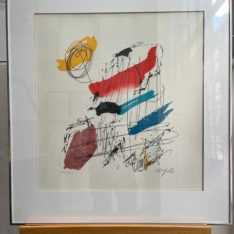 Litografi abstrakt motiv blå ramme, Robert Jacobsen