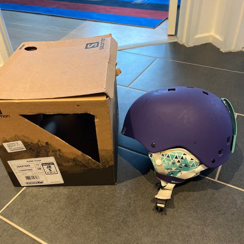 Salomon JR S skihjelm i størrelse S (53-55 cm). Hjelmen har en mat sort finish og er designet til juniorbrugere. Den har ventilation og justerbar rem for komfort og sikkerhed under skiløb eller snowboarding.