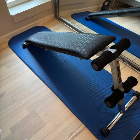 God polstring - klar til maveøvelser, håndvægte m.m.