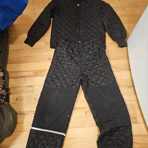 Termosættet er vandafvisende og udstyret med refleksdetaljer, så barnet lettere bliver set i mørket. Termosættet er yderligere forstærket på knæ og sæde for at gøre det mere slidstærkt
