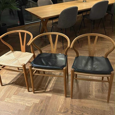 BYTTE Carl Hansen CH24 med cognacfarvet lædersæde
