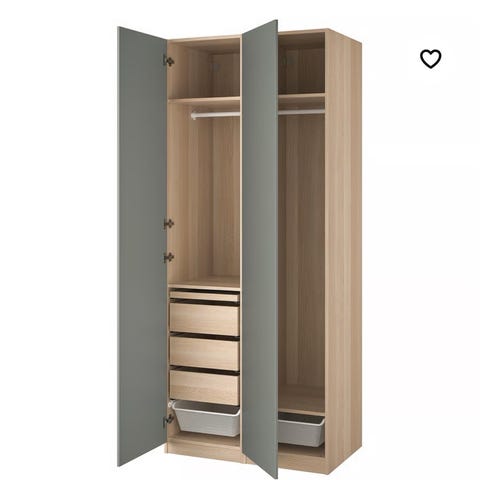 Skabet er fra IKEA og er en Pax-løsning med Grimo-låger.
