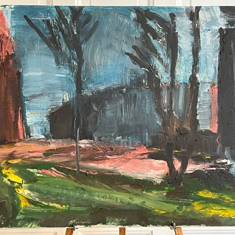 Oliemaleri med titel “Dyrehaven” af kunstner Bent Straarup