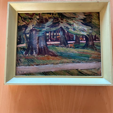 Titel “Dyrehaven “ Maleri Landskab med Træ og Hav