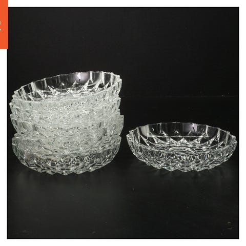 Vintage isasietter dessertskåle i klart glas, dessertskåle med klassisk design, velegnet til servering af desserter eller små portioner. Fremstillet i klart glas. Uden skrår.