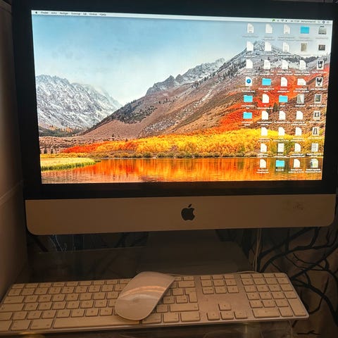 imac 21,5” skærm, indbygget dvd drev, 4 usb indgange, flere indgange. Trådløst originalt tasterne, mus og pegeplade.