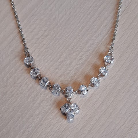 Fin halskæde/ colie af sølv 925 med bevægelige kæder. slebet halvædelsten, perler. Længde 3- 5-7cm. Halskæde stemplet 925+. Længde 41cm. Ny og ubrugt smykke..