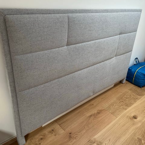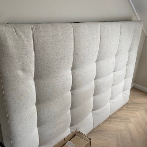 Sengegavl fra Bedre Nætter i beige. Monteres med en træskinne på væggen (skinne medfølger).