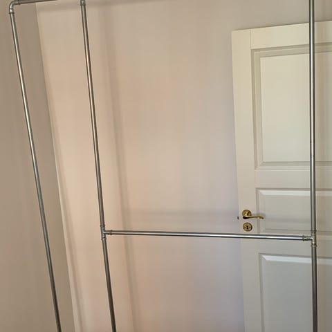Sælger dette unikke, hjemmelavede møbel lavet af galvaniserede jernrør og robuste OSB-hylder. Perfekt til åben garderobe eller walk-in closet.