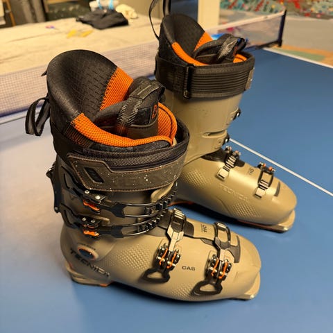 Tecnica Cochise 110 skistøvler str. 26.5 med 100 mm læst og derfor smal medium fod. Skistøvlerne er i flex 110, med gåfunktion og let indstigning. CAS inderstøvlen kan varmes op til 80 grader i ovn og tilpasses foden. Har aldrig været opvarmet.