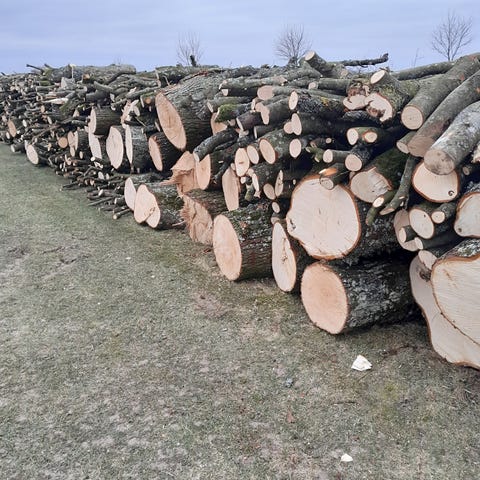 Blandet løvtræ stablet sælges pr tårn 1600 kr for 2 rm er tørt og klar til brug
