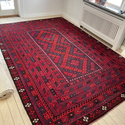 Sælger dette smukke Kilim tæppe i meget smukt mønster og i meget god stand, og der derfor ingen tegn på slid. Medfølger skridsikkert underlag til at ligge under tæppet.