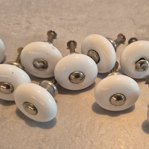 6 stk. porcelænsknopper, møbelgreb, skuffegreb, med rosenmotiv, Ø 3,3 cm, brugt men i fin stand. Sælges samlet.