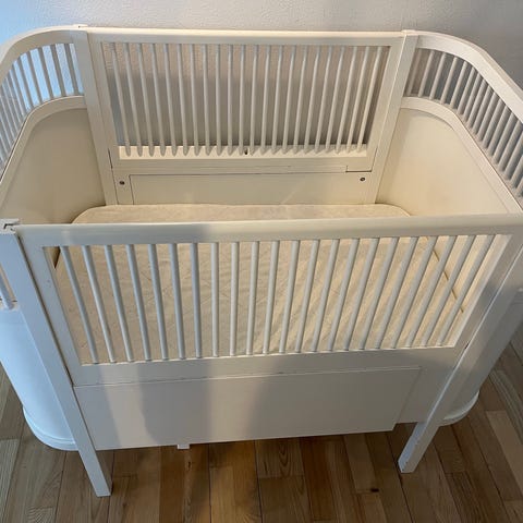 Sengen er i rigtig god stand, og alle dele er gemt, så den kan bruges fra baby og helt op til juniorseng.