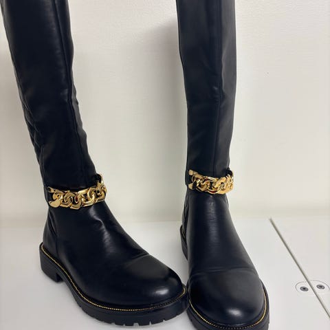 Angulus støvler i størrelse 40. Støvlerne har en beige overdel med sorte elastiske sider og sorte såler. Materialet fremstår som læder med elastikindsatser, hvilket giver en kombination af holdbarhed og fleksibilitet.