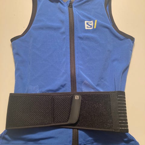 Salomon Flexcell4 V2 FEC02 rygskjold i sort/blå farve. Vesten er designet til unisex brug. Brugt i 3 år og sælges da datteren er vokset.