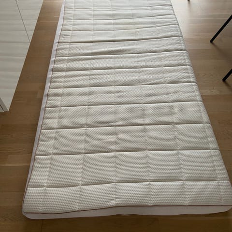 BoConcept madras i 90x200 med hvidt betræk med lynlås lige til at tage af. Trænger nok lige til en vask. Virkelig behagelige ligge komfort.