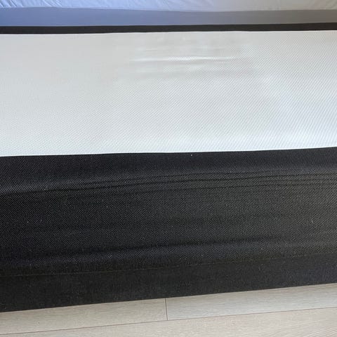 Sort Boxmadras med metalben sælges. Brugt gennem 3 år men i god stand. Befinder sig i Roskilde og skal afhentes der. De fire metalben kan skrues af.