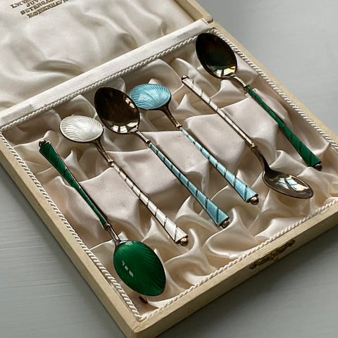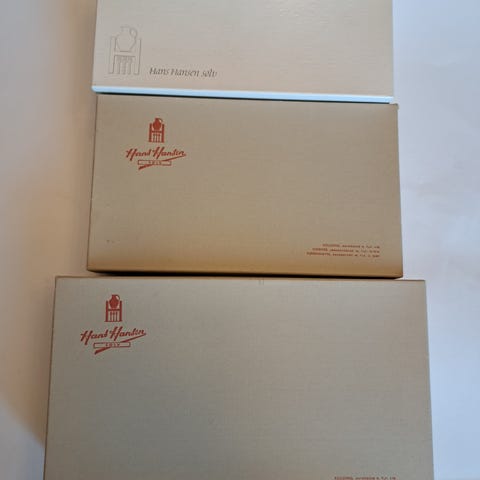 Hans Hansen er en efterspurgt designer og skeerne er Sterling sølv. Der er 163 g i alt, og skeerne sælges til en pris af 20 kr pr g.