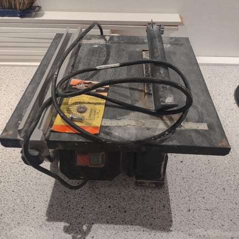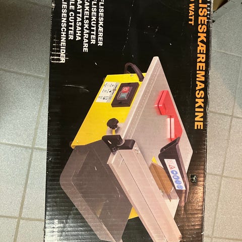 Fliseskærer og vådsav på 500 W. 100% ny og aldrig brugt, selv om emballagen ser lidt "brugt" ud.