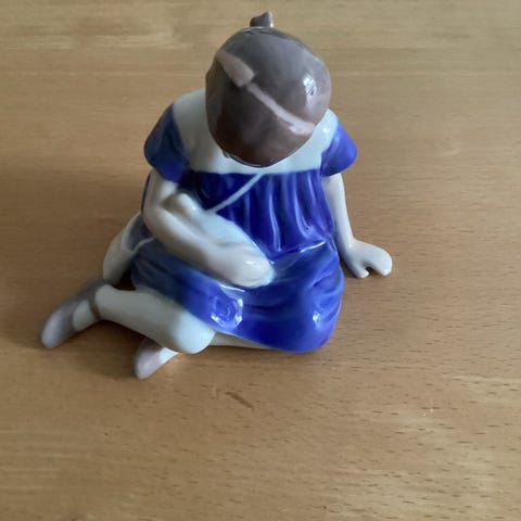 Bing & Grøndahl porcelænsfigur af en pige iført kjole med blomster, fremstillet i porcelæn. Figuren viser en stående pige, detaljeret og malet i bløde farver.