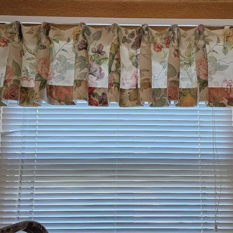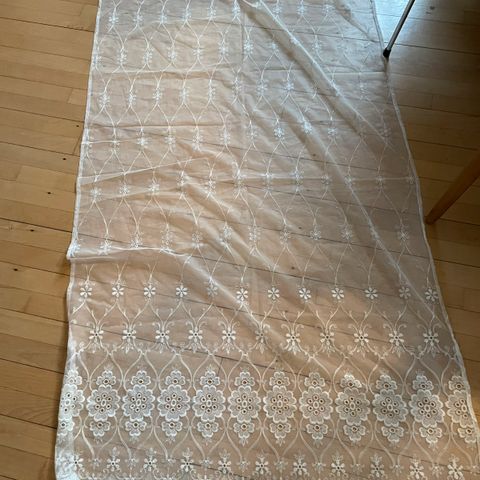 Undergardin udført som lille fin gardinkappe. Længde på stangen: 110 cm. Højde på kappen: 38 cm. Stang og beslag medfølger. Kan sendes mod betaling af fragt.