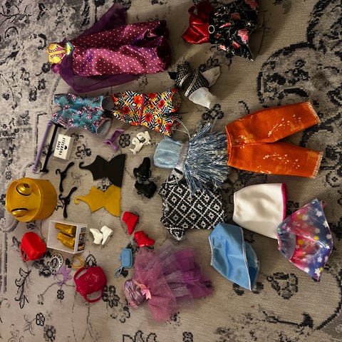 Mange kjoler bukser sko og udklædning Velegnet til børn til leg og opbevaring af Barbie-dukkeudstyr.