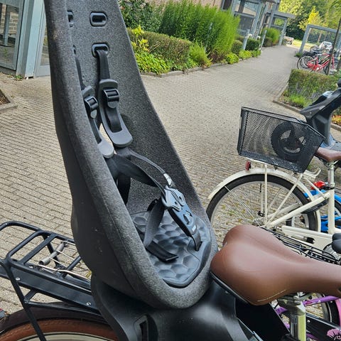 Fint børnesæde til montering på bagagebærer. Sælges da vores yngste selv cykler nu