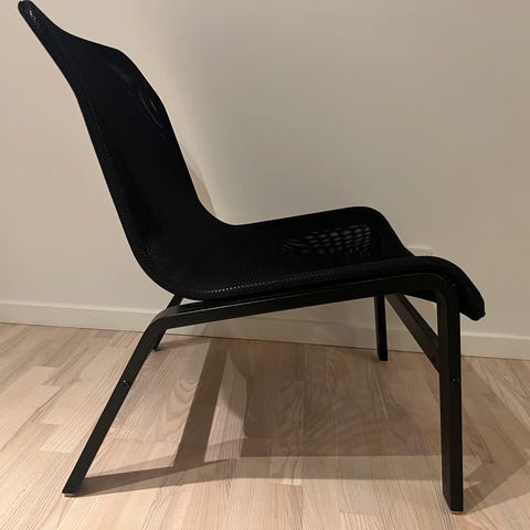 Sorte lænestole med god siddekomfort. Sælges som par. 200,- pr stk ved afhentning
