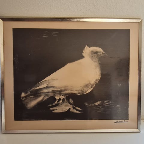 Pablo Picasso gammelt litografisk tryk af en fredsdue. Enkelt mærker