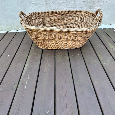 Rummelig vasketøjskurv i eg.