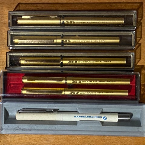 6 Kuglepenne i originale kasser - Handelsbanken, KD. DK, kr. 85,-