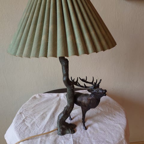 Vintage bordlampe med brølende Krondyr i messing og kobber,