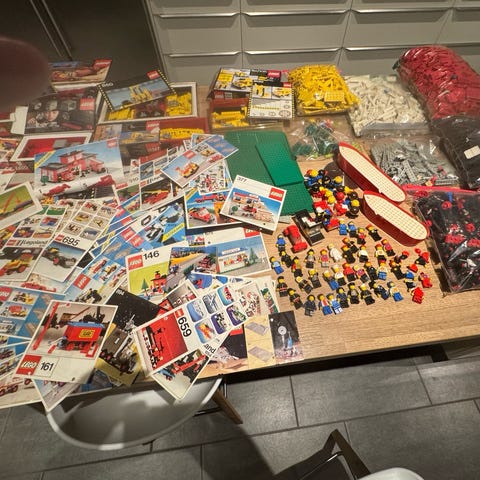 Cirka 5 kg lego. Også et par gamle nøgleringe.