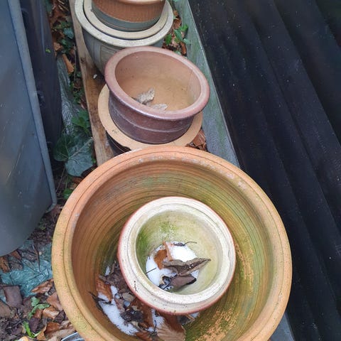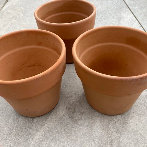Sæt med 3 flotte terrakotta krukker i forskellige størrelser.
