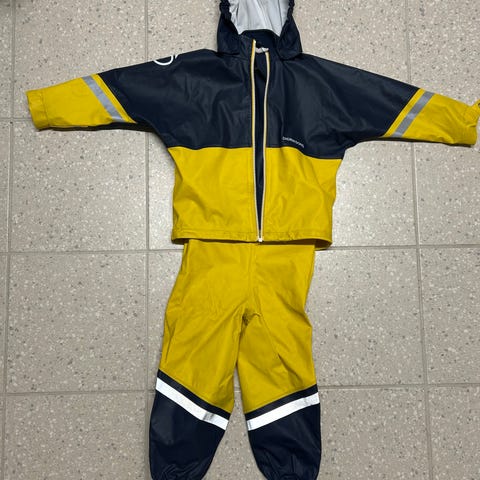 Regntøjet har blødt fleece på indersiden, og det har praktiske refleksprints.