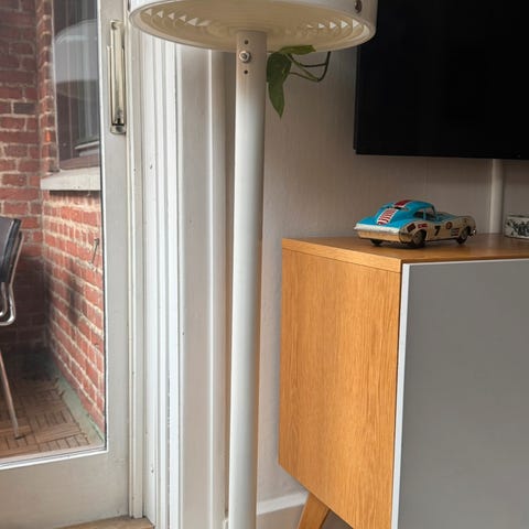 Lampen er original og 138 cm høj og har en diameter i skærmen på 37 cm.
