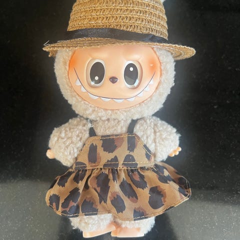 Bamse med grøn pels, lyserød mave og ansigt med store øjne. Bamsen har blødt materiale og en lang krop med arme og ben. Velegnet som legetøj eller pynt.