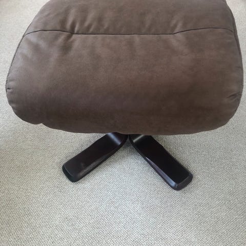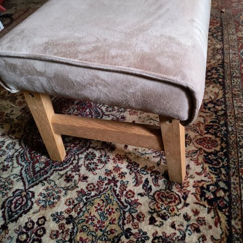 Sød og pæn fodskammel fra Ilva med rosa stof og ben i egetræ