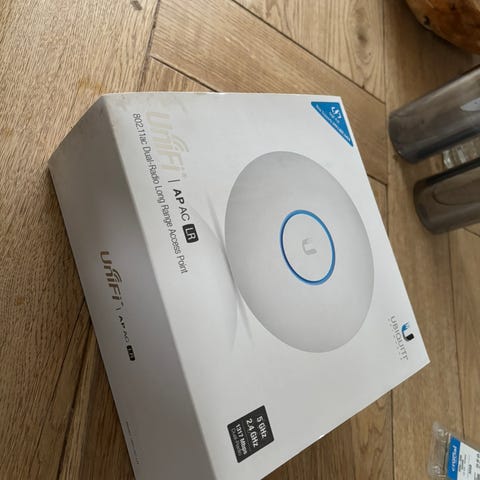 Jeg sælger en Ubiquiti AirCube AC. Det er et kompakt og stilrent access point (eller router), der sikrer god WiFi-dækning uden at ligne en rumstation. Perfekt til at forbedre netværket i lejligheden eller huset.