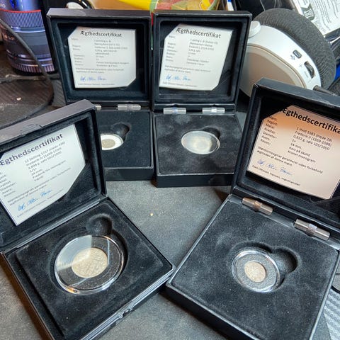 Erik Menved mønter fra perioden 1286-1319. Mønterne er historiske og kommer fra forskellige områder som Slesvig og Nørrejylland. Møntens tilstand og detaljer varierer naturligvis, da de er over 700 år gamle. De er købt på auktion hos Lauritz.
