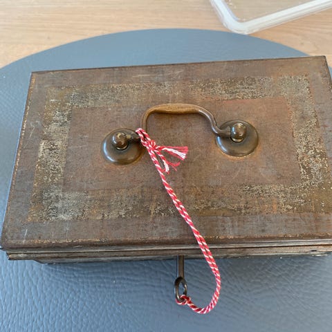 Fed retro metal pengekasse, eller som smykkekasse i fineste grøn metallic farve med patina. Pengekassen er udstyret med møntbakke, rum til sedler, håndtag til nem bæring, afrundede kanter og 1 nøgle inkluderet. Mål: 24x 20x 10 cm.Grøn pengeskab med nøgle, indvendige rum til organisering og metalmateriale. Velegnet til opbevaring af penge og værdigenstande.