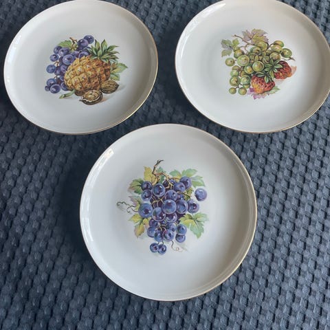 6 stk. smukke Vintage tallerkner med forskellige frugt motiver dia... 19,5 cm. samlet pris 225 kr nu 200 kr