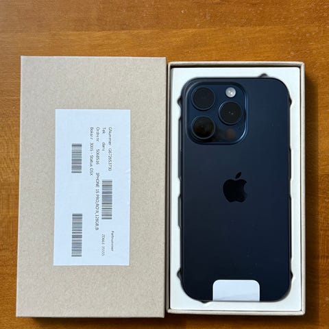 Helt ny iPhone 15 pro i uåbnet æske med kvittering og 2 års reklamationsret. Den er ombyttet via Top Danmark og er derfor i en anden æske fra Greenmind men telefonen kommer direkte fra Apple og er fabriks ny. Billede et er fra nettet da jeg ikke vil åbne æsken. Den er blå med 128 GB prisen er fast.