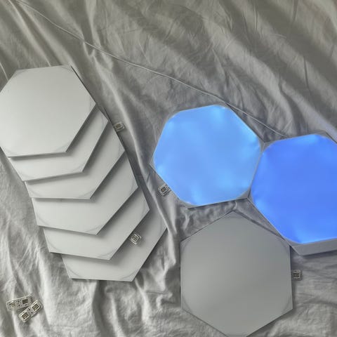 Sælger mit sæt med 9 originale Nanoleaf LED-paneler. De fungerer helt perfekt og giver fantastisk stemningslys til gaming-, sove- eller stueværelse.