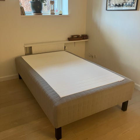 CA 2 år gammel Ikea Skårer boxmadras 120x200 boxmadras inklusiv en Ikea Tuddal topmadras, Ängskorn rullemadras og ben sælges. Købspris ca. 4.000 kr. Fra røg - og dyrefrit hjem. Sengen har kun været brugt som gæsteseng og fremstår pæn, uplettet og med nyvasket topmadras og rullemadras. Der mangler en enkelt dyvel til fastgørelse af benene. Kvittering haves og fremsendes til køber. Hurtig afhentning prioriteres. Befinder sig på 3. sal.