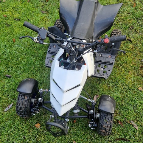 Børne-ATV sælges. Camouflage-farvet plast med for- og bagagebærer.