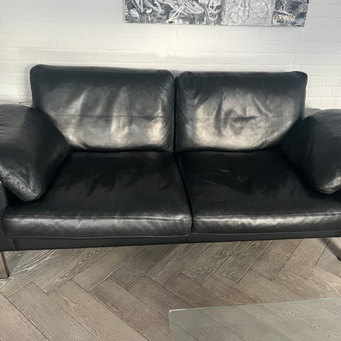 Velholdt Nielaus sofagruppe i sort læder. Uden skjolder og defekter.